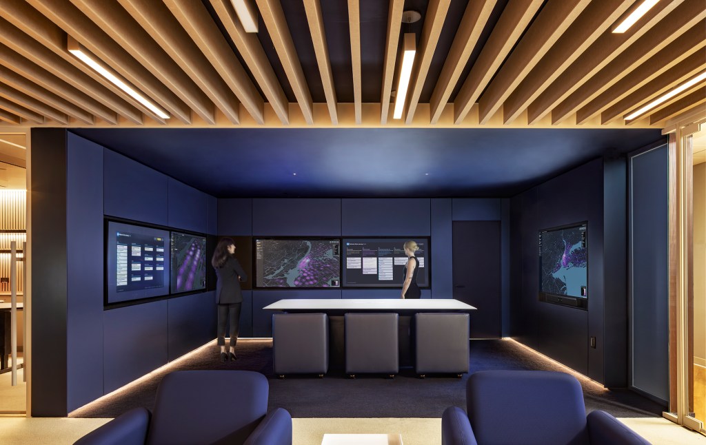 A real-time ticker keeps teams updated on waiting room capacity and patient flow. And on a massive LED wall, an abstract visualization reveals the complex relationships between services, physicians, and patients, designed to spark curiosity and invite visitors into the space.